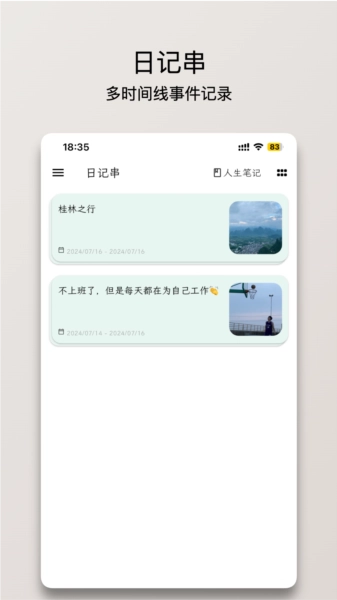 人生笔记Real是一款便捷实用的笔记记录平台,能够通过丰富的笔记编辑工具轻松记录笔记内容,满足用户的生活以及情感记录的需求,记录笔记更加方便,还能通过多种方式清晰展示笔记,通过多个时间线轻松串联笔记内容,得到专属的日记阅读体验。