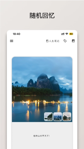 人生笔记Real,一款简洁易用的笔记软件。它能助力用户轻松完成日记与笔记记录,还配备众多工具辅助编写。不仅如此,你还能将图片、音视频添加到笔记里。该软件支持自动网盘备份,全方位守护你的数据安全,从此无需担忧数据丢失。