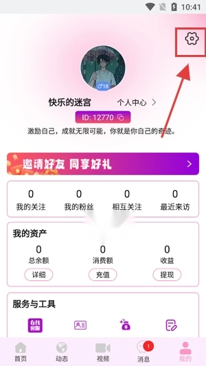 请打开您的单缘App,进入个人中心后,点击其中的设置功能。