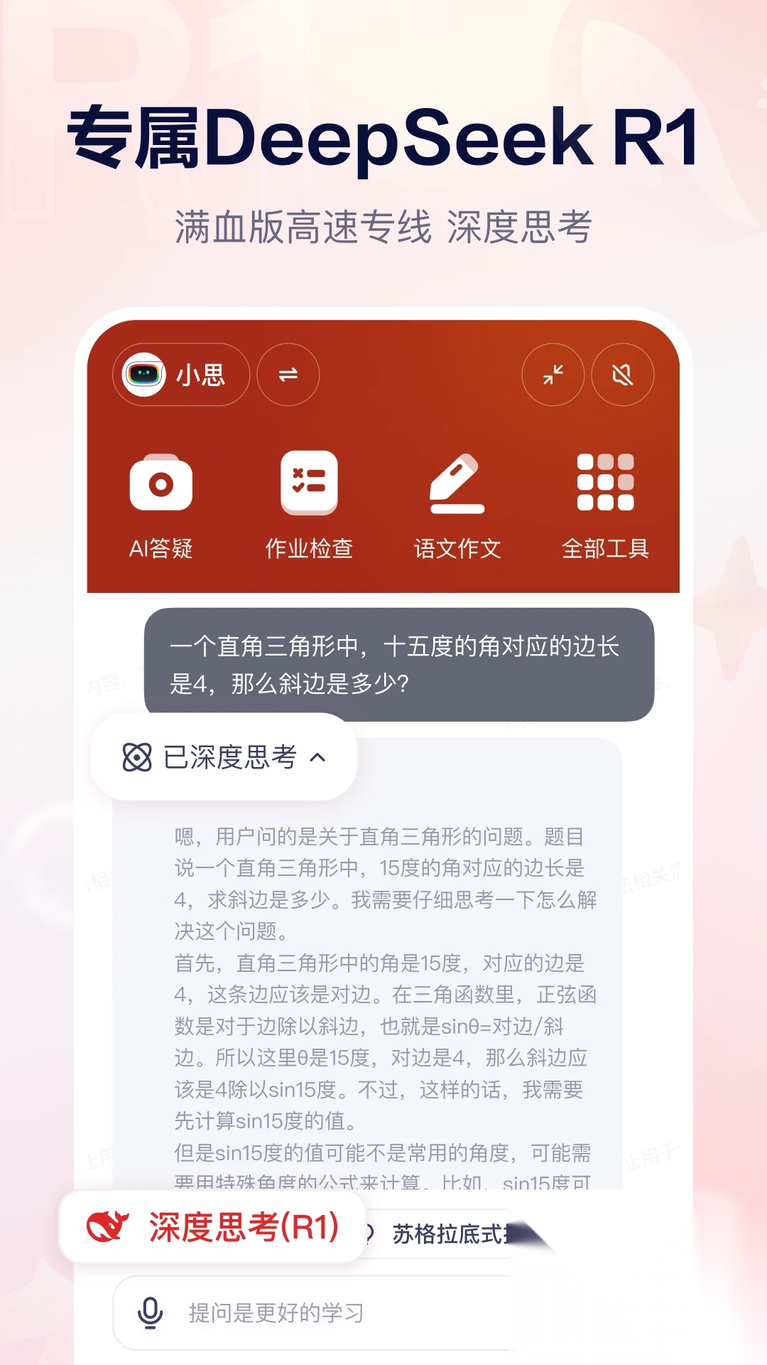 AI解题方式便捷,用户只需通过拍照或者以文字形式输入题目,AI就能迅速识别,并给出解题思路与答案。