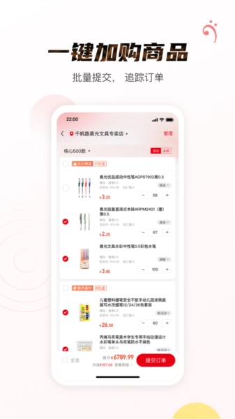 这里还可以在线批量提交自己的订单,一键下单采购需要的商品。