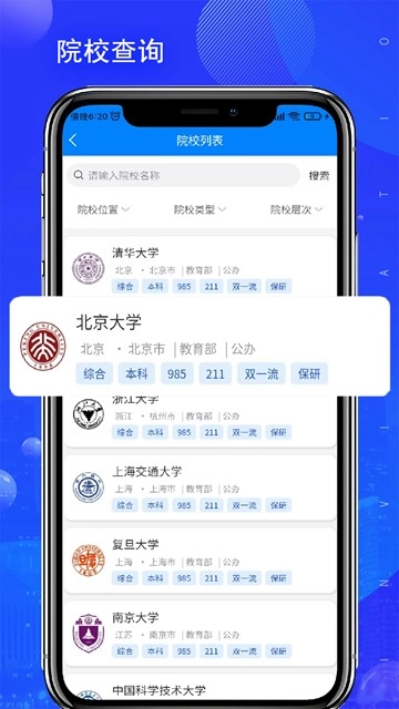 覆盖广泛:该应用涵盖了国内各大高校,特别是985/211工程院校以及双一流建设高校,帮助考生快速定位并了解心仪大学的情况。