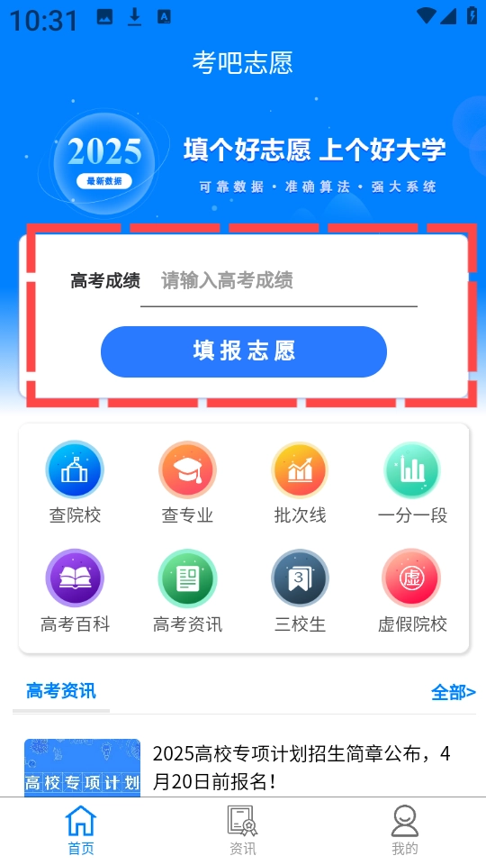 考吧志愿是一款专门针对志愿报考精心打造的软件。它依据高考成绩精准匹配高校,有效提升录取几率。其具备全面完善的服务体系,为广大高考生提供了最优质的服务。该软件支持多种功能模式,涵盖查院校、查专业、查询批次线以及浏览高考资讯等。同时,它整合了历年来的招生简章,用户只需输入高考成绩,就能借助它轻松完成志愿填报。