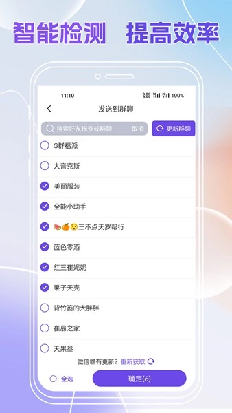 里面还会对用户群发的内容和对象进行智能的检测,帮助用户便捷的进行群发。