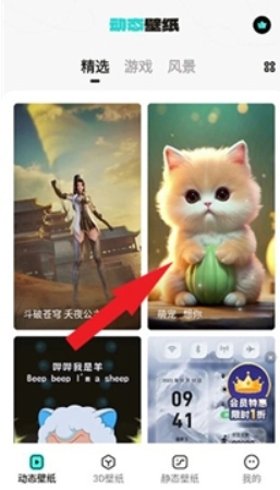 1、打开元宇宙壁纸,进入动态壁纸页面,选择相关的分类,选择想要的壁纸