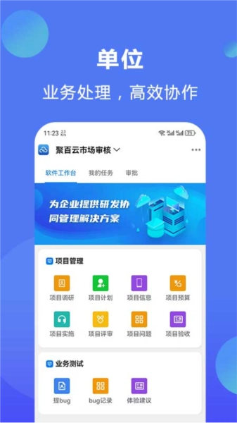 支持项目管理,可以进行项目计划以及项目信息,还可以进行调研;