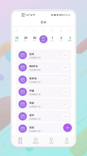 1、学习打卡都可以随时去进行,每位用户的打卡需求直接就可以知晓