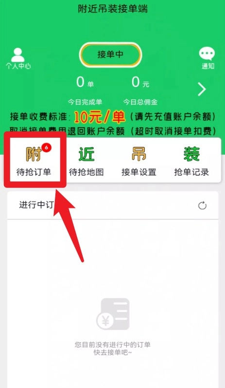 4、通过“待抢订单”标签页查看所有可接任务清单。