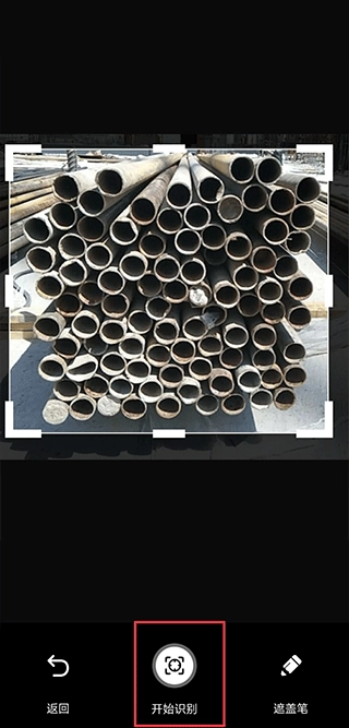 5、拍照时使用遮盖笔,可以将不需要识别的钢管涂抹掉