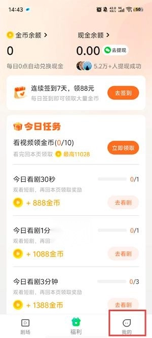 开启你的免费短剧嗨番App,轻点“我的”进入个人中心。