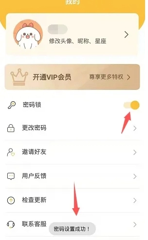2、在我的页面上方开启密码锁