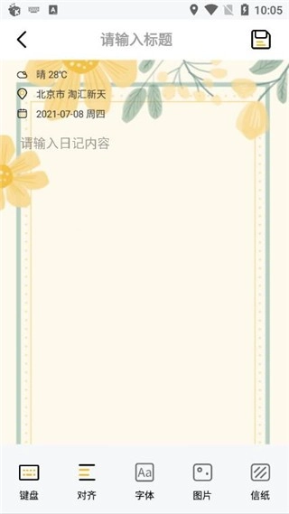 4、在弹出的页面中,输入日记内容即可