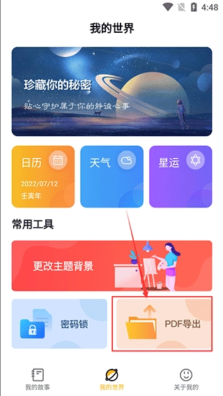 2、在【我的世界】页面下方点开【PDF导出】