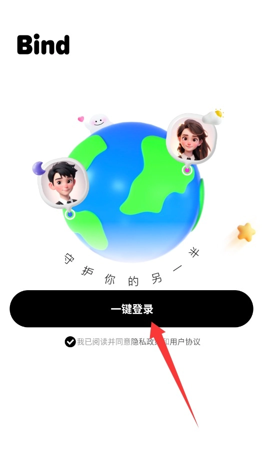 1. 开启bind情侣定位,认真阅读隐私条款后勾选同意,选取微信登录或者通过手机验证码快速登录系统。
