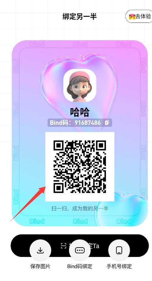 2、在"我的"页面找到情侣绑定功能,点击生成专属配对二维码,让对方扫码完成绑定关系。