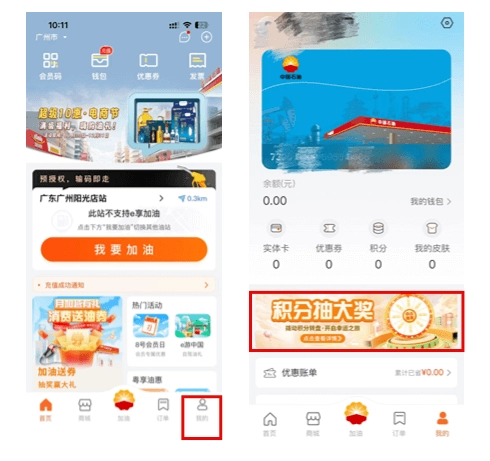 积分抽奖位置:中油好客e站App-我的-积分抽大奖