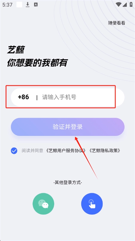 2、进入登录页面,输入手机号,获取验证码即可快速登录。
