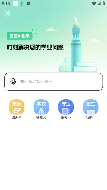 2、进入AI学业匹配页面,为大家提供了填志愿、选学校、选专业等功能服务;