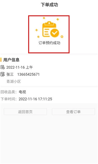 2、填好回收品类、个人信息、预约时间后点击提交订单