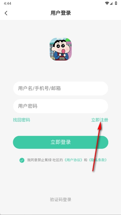 2、点击下方立即注册