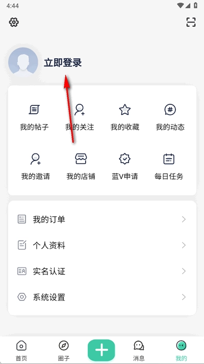 1、在“我的”界面中,点击上方的“立即登录”。