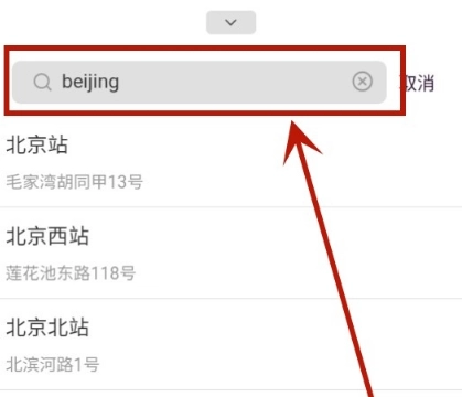 3、在搜索地点的框框中搜索你想改的城市;