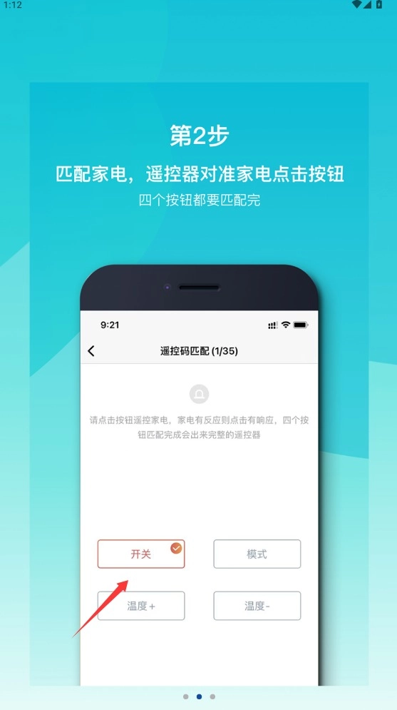 2、将手机红外发射器对准家电,按照提示依次匹配各个功能按键,确保全部指令传输成功。