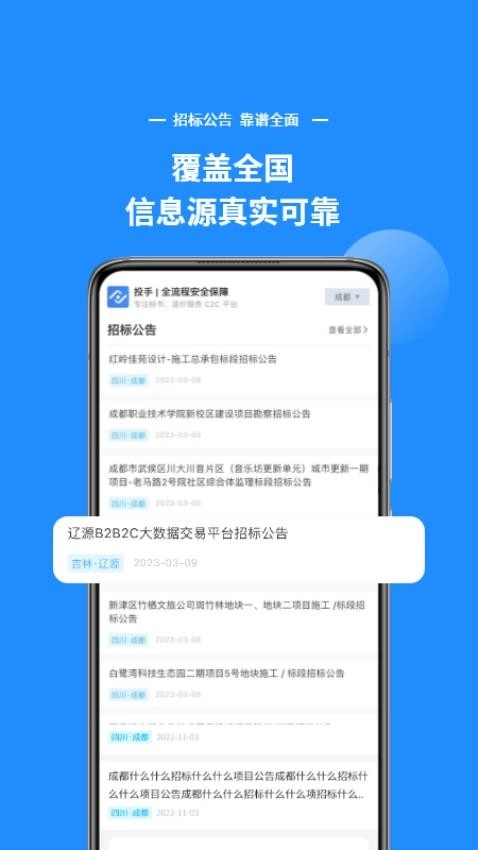 招标公告覆盖全国用户可以查看到覆盖全国的各种招标公告详情信息。