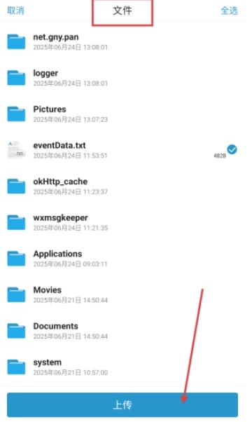 3、回到光鸟云盘首页,点击右上角传输列表图标即可查看正在的视频,等待完成后,视频就可以在手机相册中查看