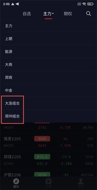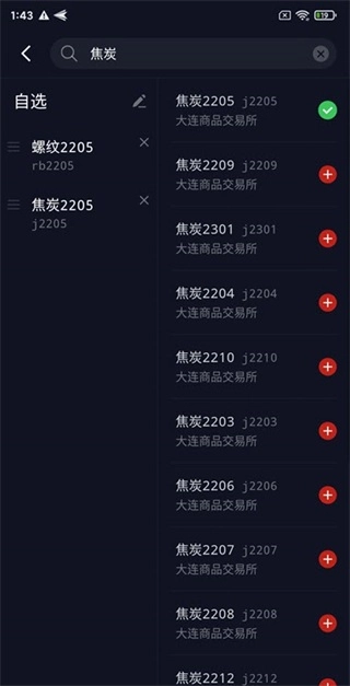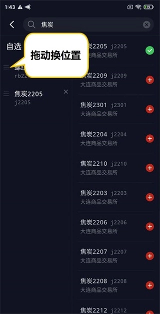 在下图标示的位置输入合约代码拼音中文找到目标合约并添加