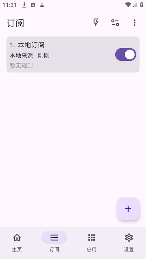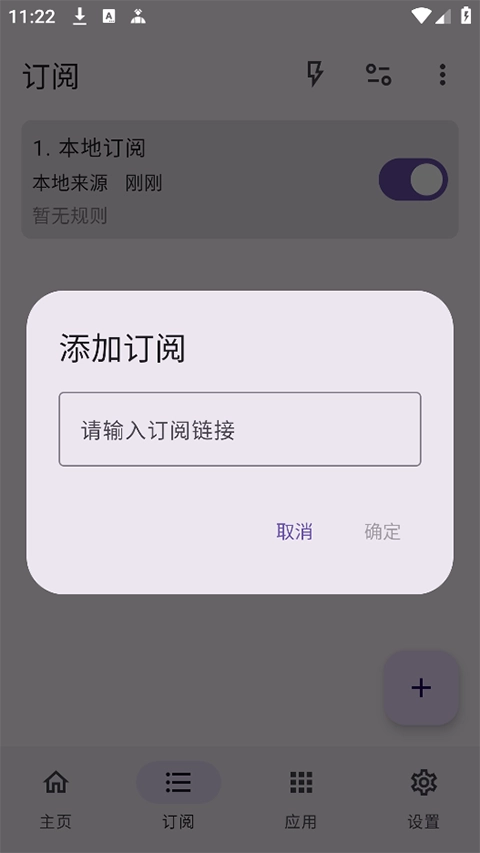 4、在右下角点击“+”号,输入小编上面提供的规则订阅链接。