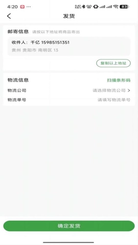 3、应用内直接编辑客户的收货地址信息,用户还可以选择合适的物流并输入快递单号,实现一键发货。