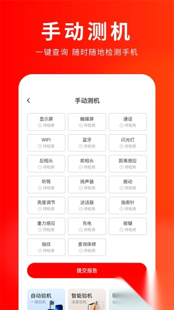 1、打开好靓机汇App,点击“测机”,助你快速了解手机功能是否完好。