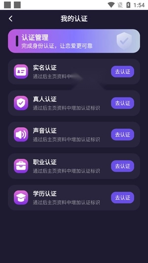 请打开深聊App,进入个人中心后,点击其中的我的认证功能。