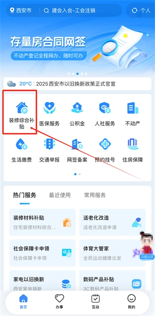 1、第一步,打开“i西安”,点击【装修综合补贴】选项进入。