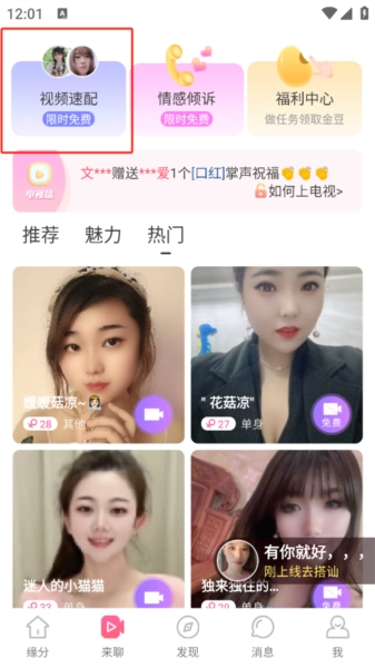 6、没有看到自己心动的人时,也可以选择视频速配碰碰运气,万一就匹配到让自己心动的呢
