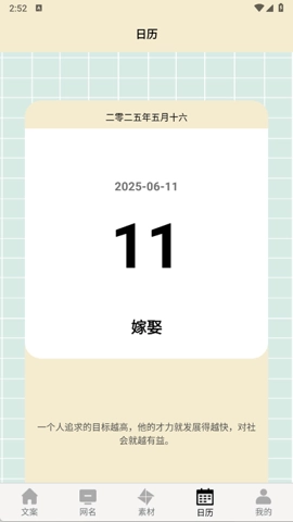 3、为了让用户更好地利用这个工具,摘抄还设有日历功能,显示当前并推荐每日精选语录。