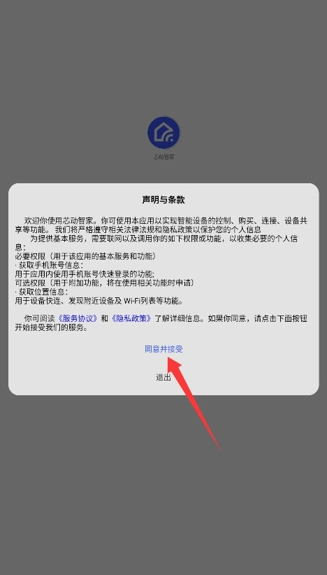 1. 首次使用时,需仔细通读平台服务条款及隐私政策,确认无误后,点击“同意并接受”方可进入应用。