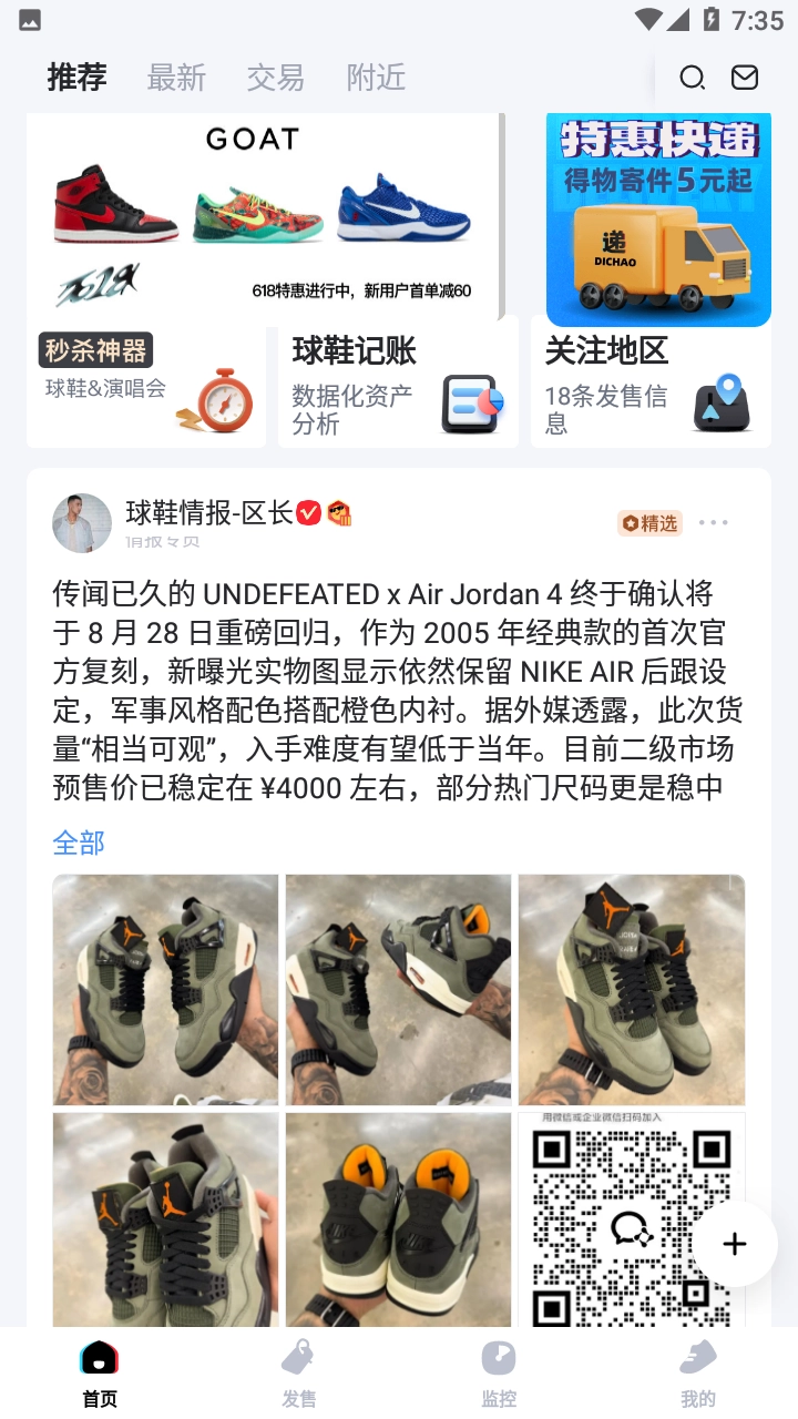 3、在首页当中,可以看到众多用户发布的潮鞋信息;