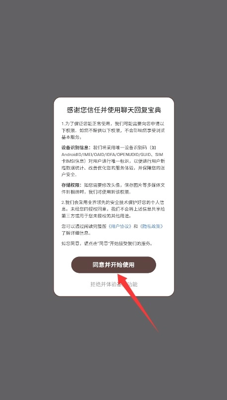 1. 首次使用时,需仔细通读平台服务条款及隐私政策,确认无误后点击“同意”,方可开启使用。
