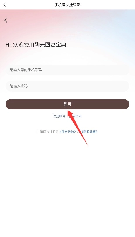 3、输入注册手机号和对应密码,勾选同意协议后点击"登录"按钮完成账号认证。