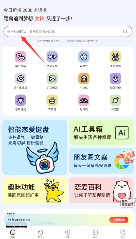 3、在首页搜索框输入对话内容,系统将智能生成合适的回复建议供您选择。