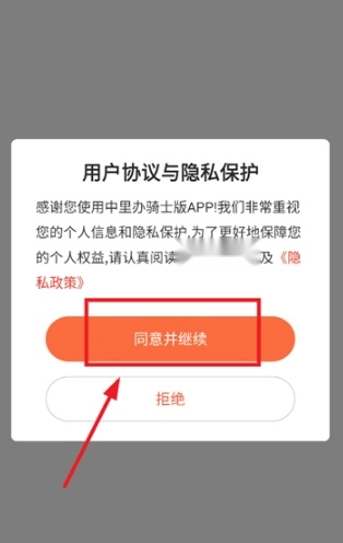 安装并打开中里办骑士版,首先查看用户协议与隐私保护。