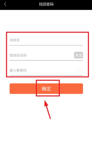 输入手机号,验证码,新密码,点击确定即可。