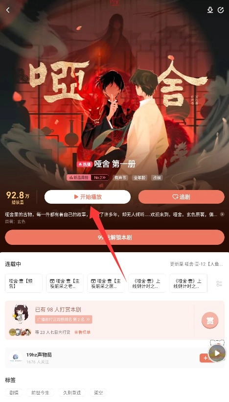 2、进入小说详情页面后,点击开始播放按钮,即可在线收听该作品的完整音频内容。
