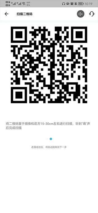 4、手机连接WiFi后,会显示一张二维码,把这张二维码置于摄像头前扫描,就能完成绑定。