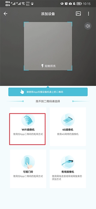 2、直接用手机扫描设备上的二维码即可绑定,若扫描不了,可使用下图其他方式连接,如WiFi摄像机