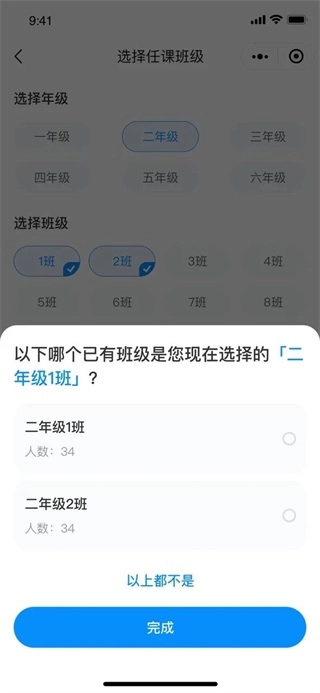 如果是教学类老师的话,需要进一步完善信息例如是否是班主任、任教科目、任教班级信息;如果是非教学类老师的话,则无需填写以上信息。