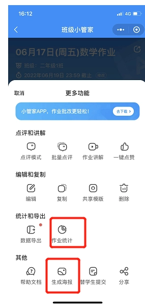 点击已发布的任务进去,点击右下角蓝色的四叶草,点击作业统计