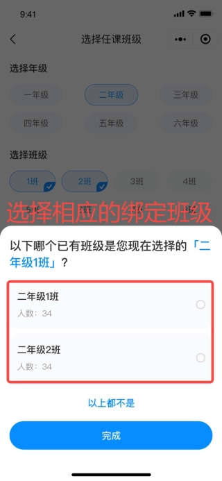 注意:如果老师已有班级的话,请注意选择绑定班级
